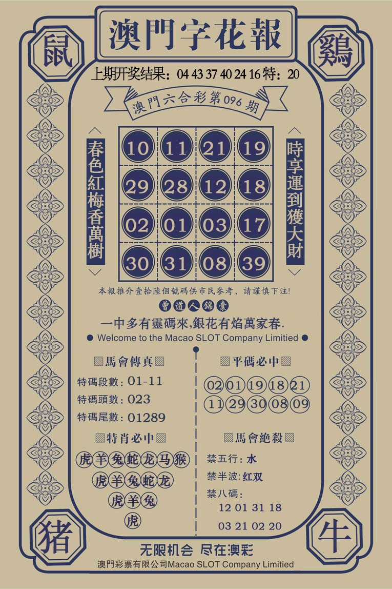 096期澳门字花报[图]